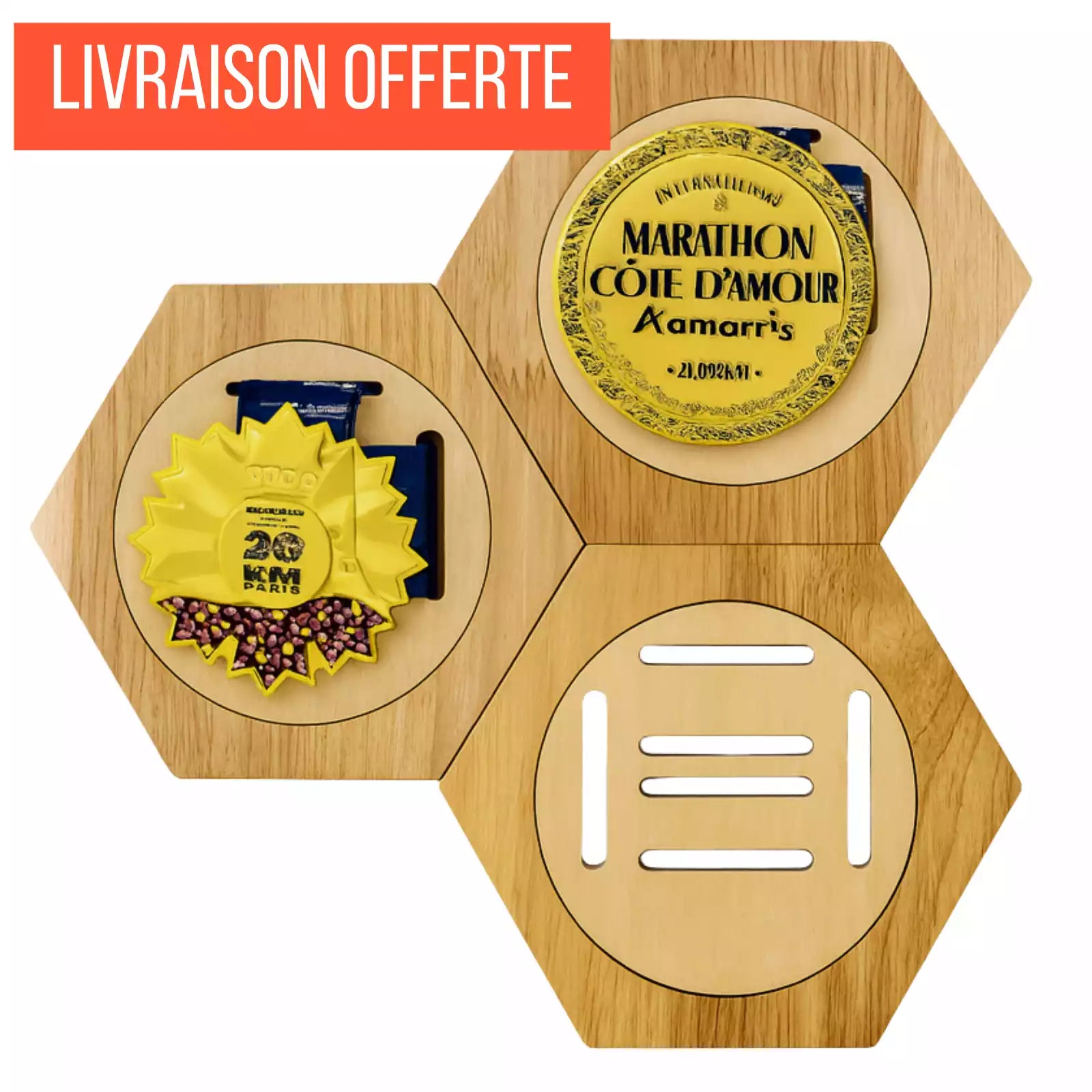 Los módulos de madera son perfectos para exhibir tus medallas más bonitas.
