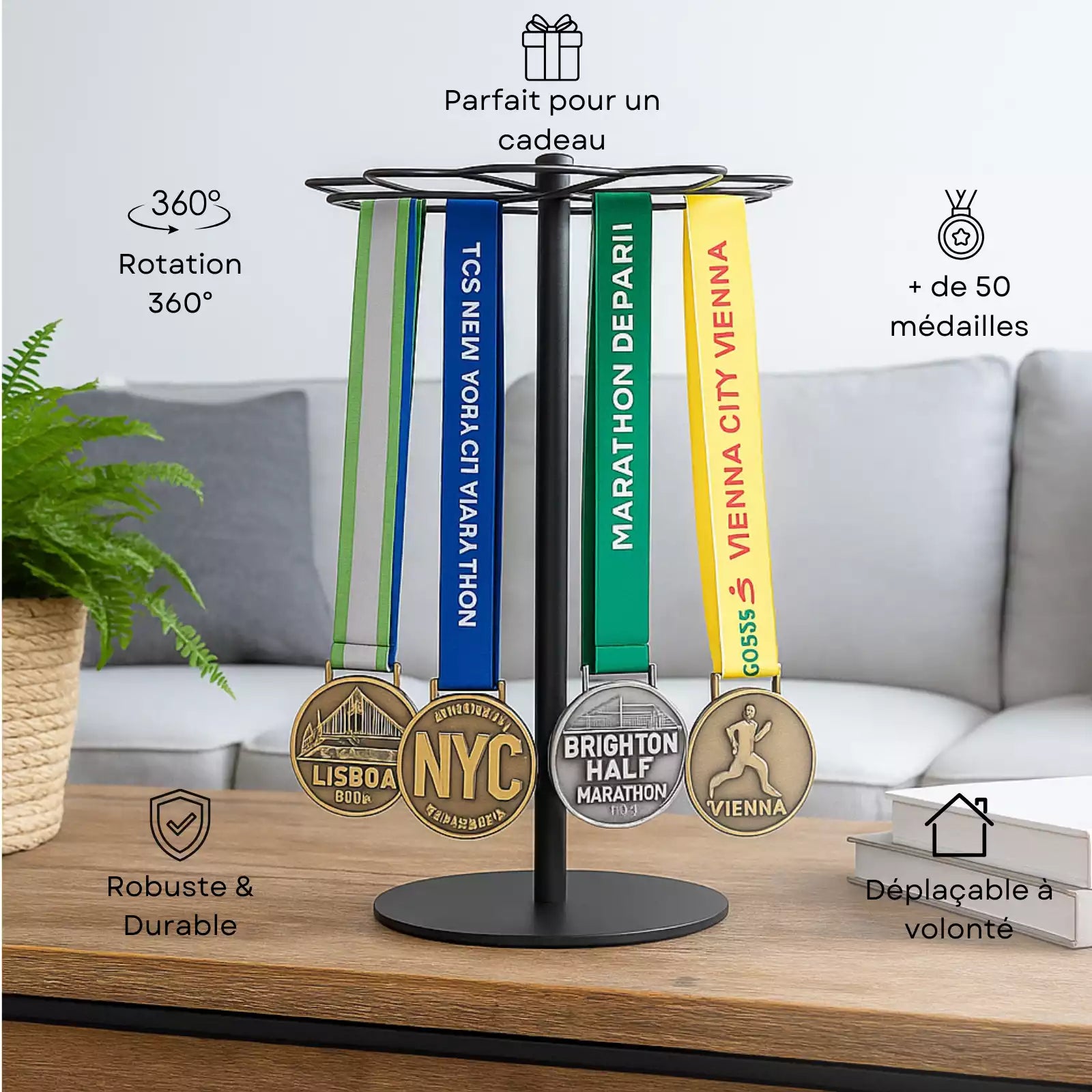 Ce support vous permet de mettre en lumière vos accomplissements, avec une rotation à 360° et un design stable en acier qui trouve sa place sur n’importe quel bureau ou étagère.