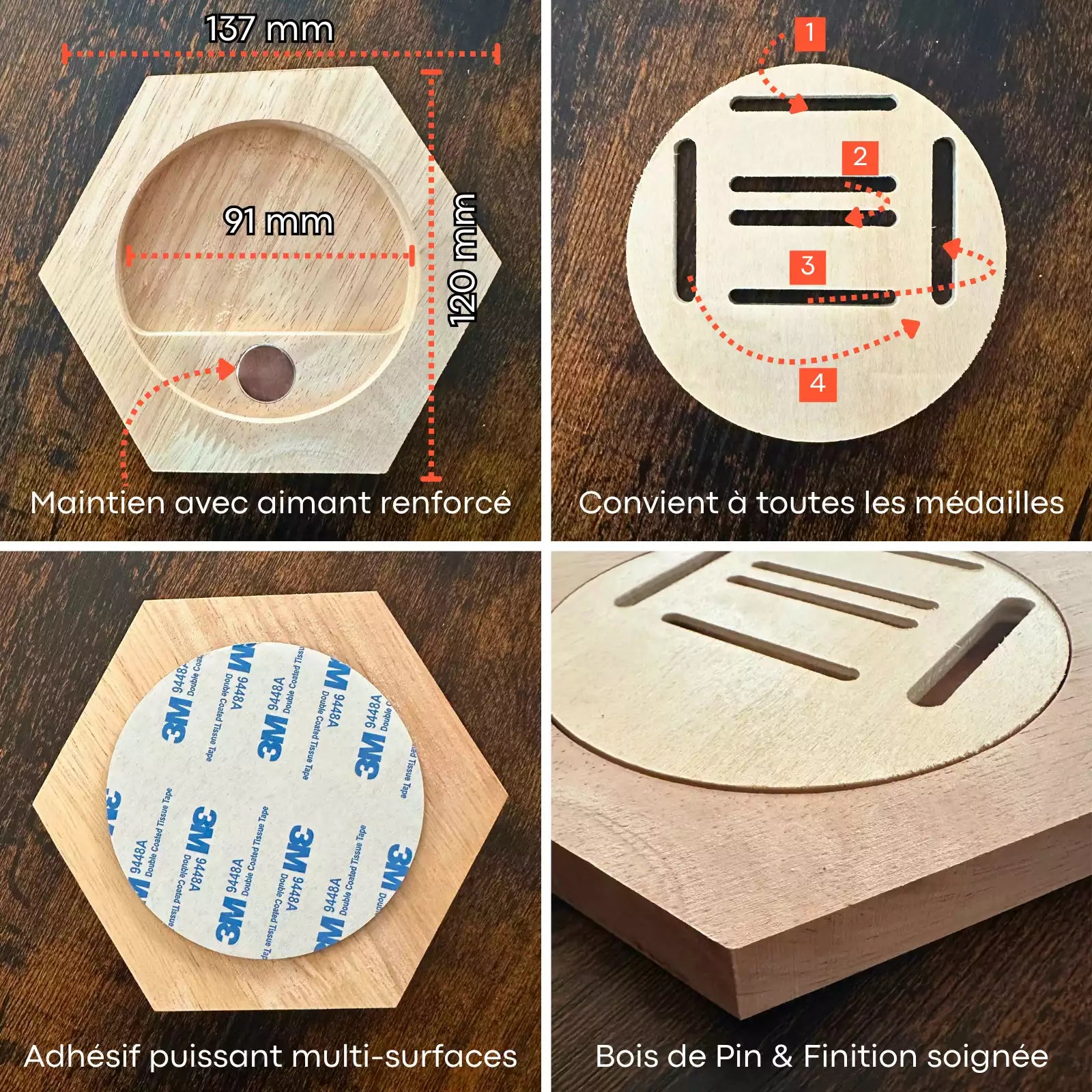 Porte-Médailles en Bois de Pin